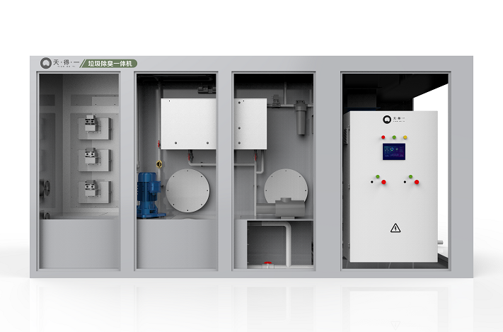 垃圾除臭一体机是我司结合多种除臭工艺例如微波深紫外、生物喷淋工艺的新型除臭设备,能有效针对垃圾中转站的臭源进行治理,整体设备外形简洁美观大方,安装方便,一站式解决现有垃圾中转站除臭设备占地面积大、设备噪声大、设备外形与站点设计风格差异大等问题。