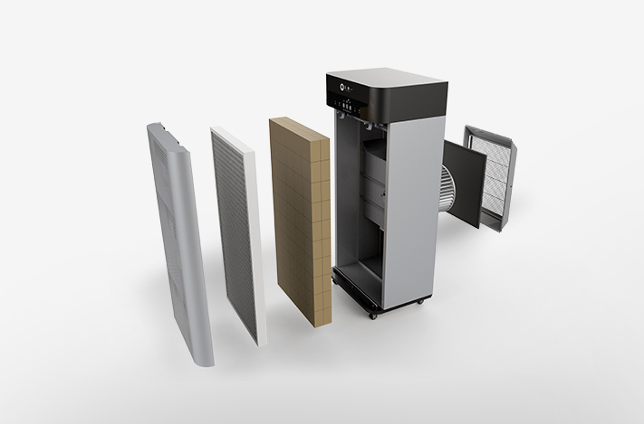 3.多重净化技术:净化机采用初效过滤网、抗菌抗病毒图层、纳米光触媒涂层、HEPA高效过滤网、复合滤网多重过滤,洁净能力显著提升。