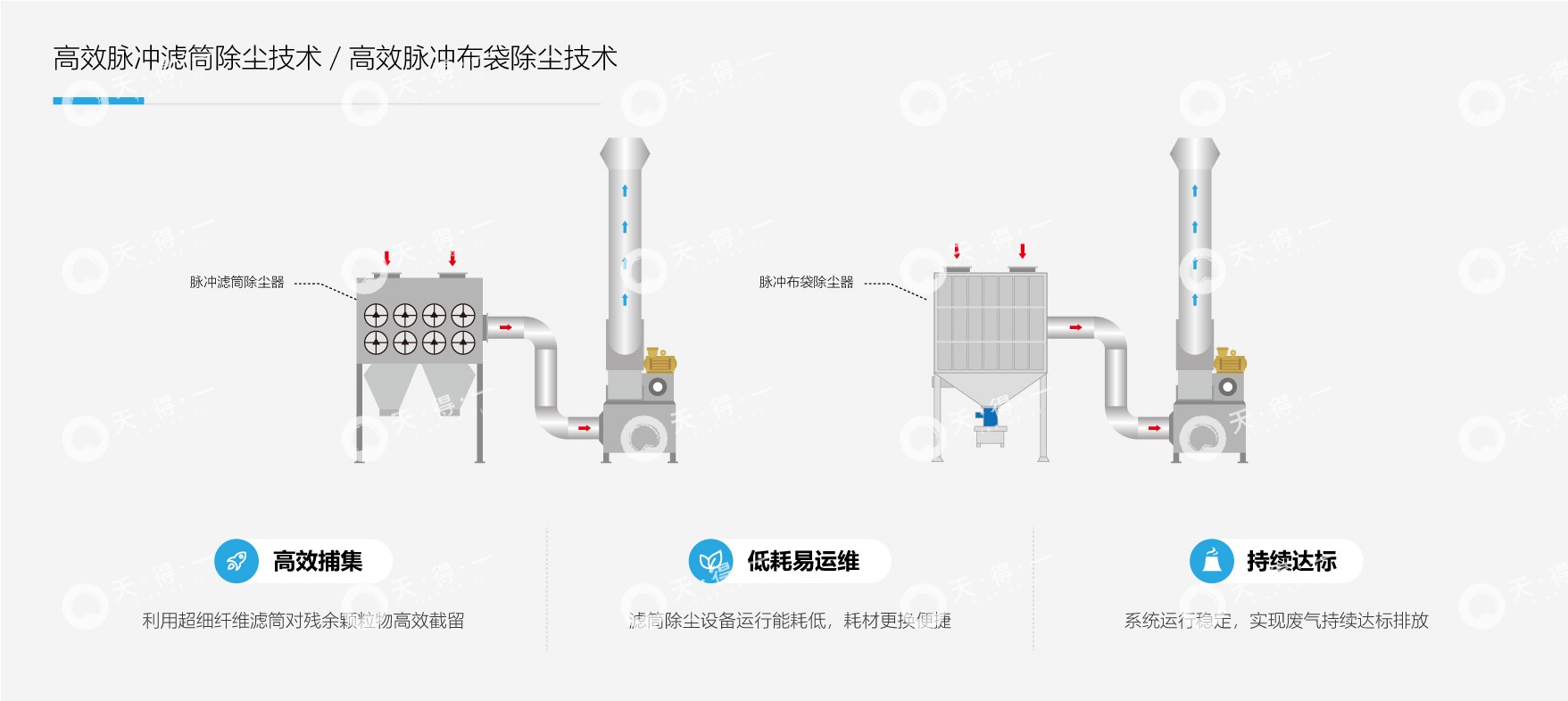 针对锂电池制造业中含尘废气粉尘的特点,我司提供高效脉冲滤筒除尘器与高效脉冲布袋除尘器两种优化方案。粉尘废气经专为收集点位设计的顶吸罩或侧吸罩有效捕集后,进入除尘主机,滤筒除尘器凭借其超细纤维滤料,对微米级颗粒物具有极高捕集效率;而布袋除尘器则以其良好的经济性与耐磨性见长,两者均采用高效脉冲清灰技术,能自动清除附着的粉尘,保障系统长期稳定运行,最终实现持续达标排放。