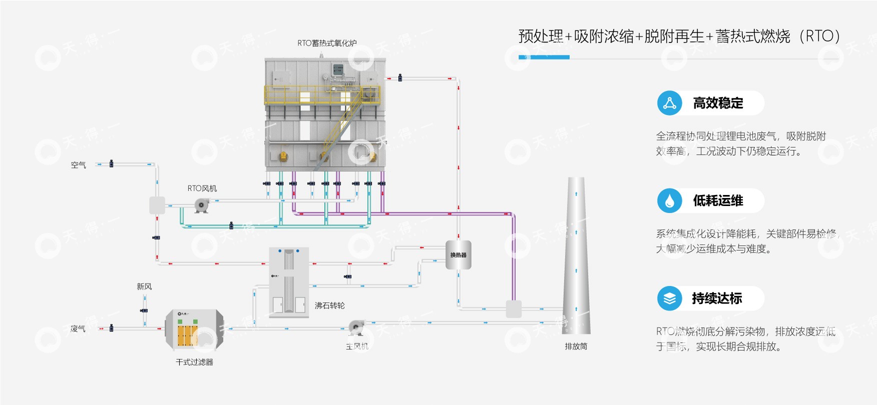 针对锂电生产的低浓度有机废气治理,我司基于 “低耗能、零干扰、全自动” 的治理理念,设计出高效集成治理方案,助力企业实现环保与能效双赢,推动ESG目标切实落地。